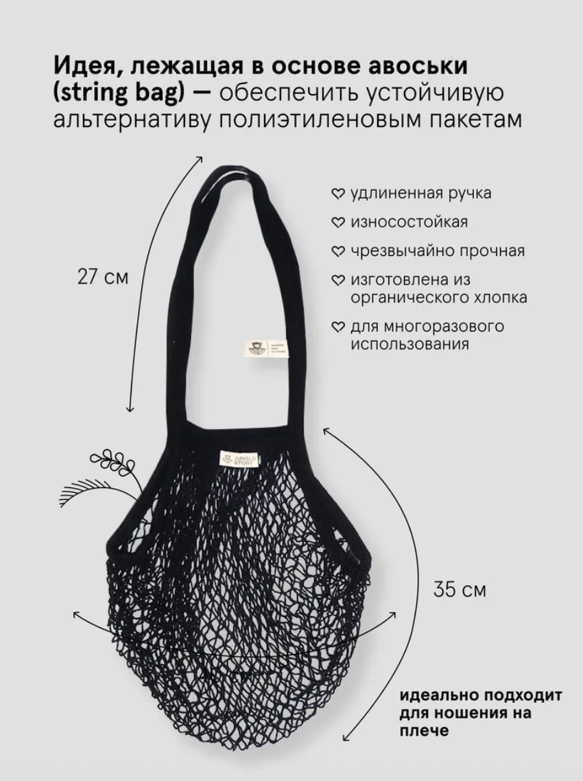 Ручки авоськи длинные, мягкие и достаточно широкие, которые не режут плечо!