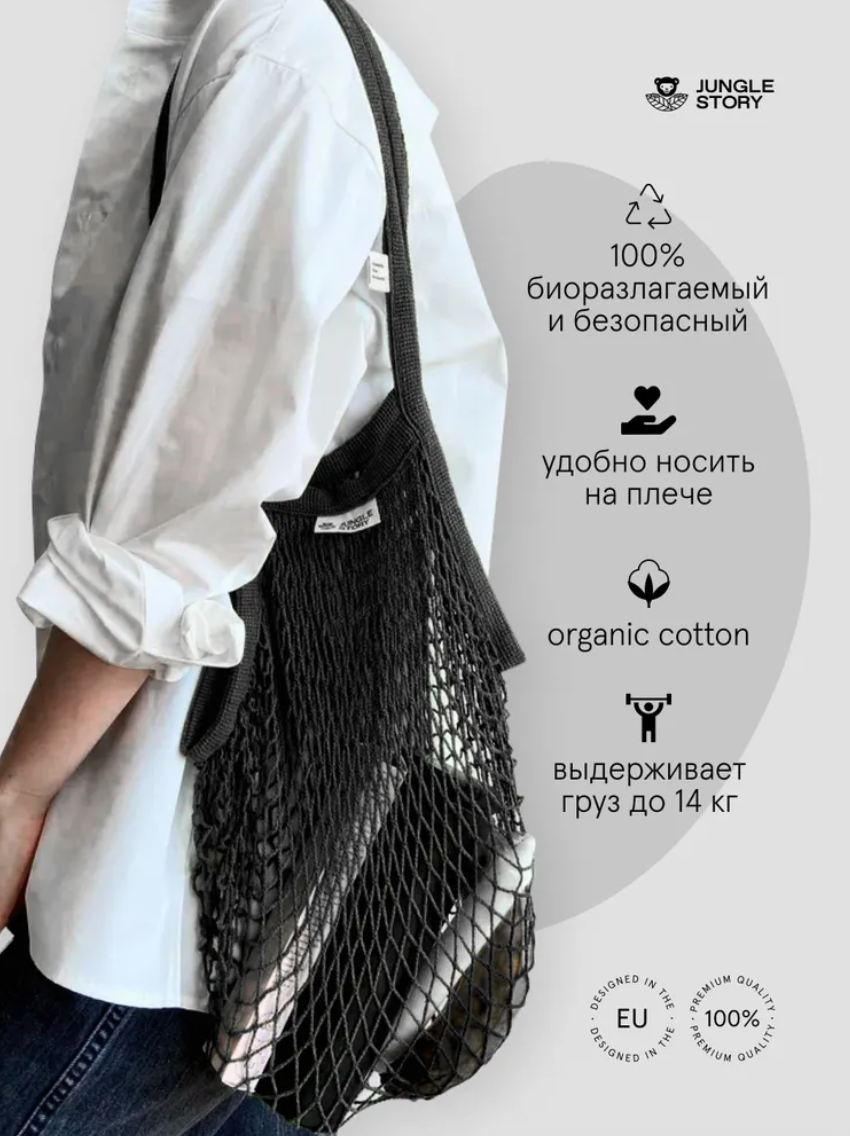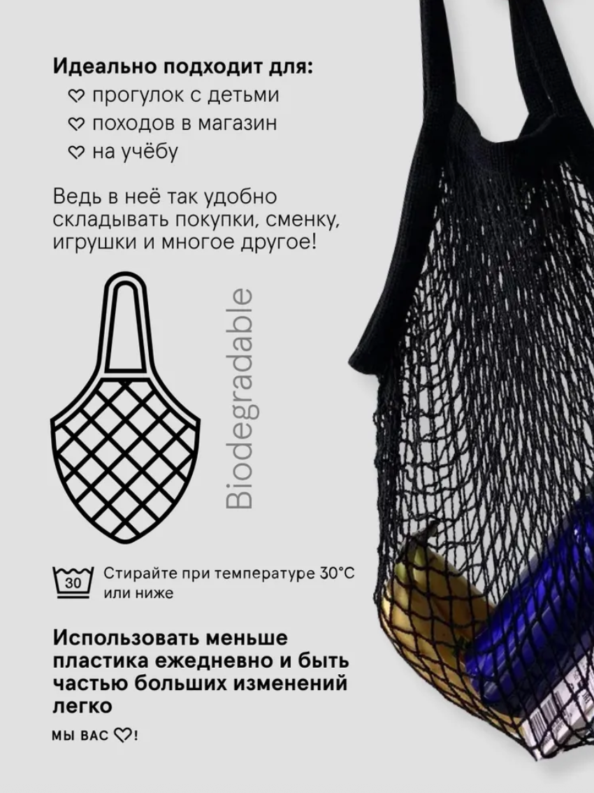Плетеная сумка многоразового использования изготовлена из биоразлагаемого органического хлопка, что делает её износостойкой и чрезвычайно прочной!