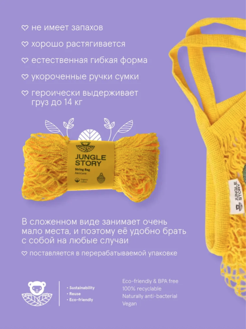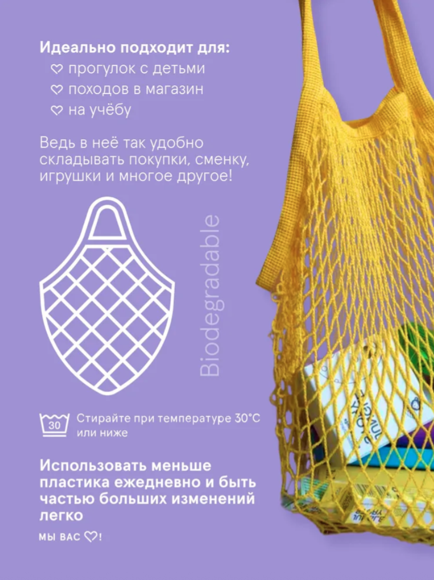 Плетеная сумка многоразового использования изготовлена из биоразлагаемого органического хлопка, что делает её износостойкой и чрезвычайно прочной!