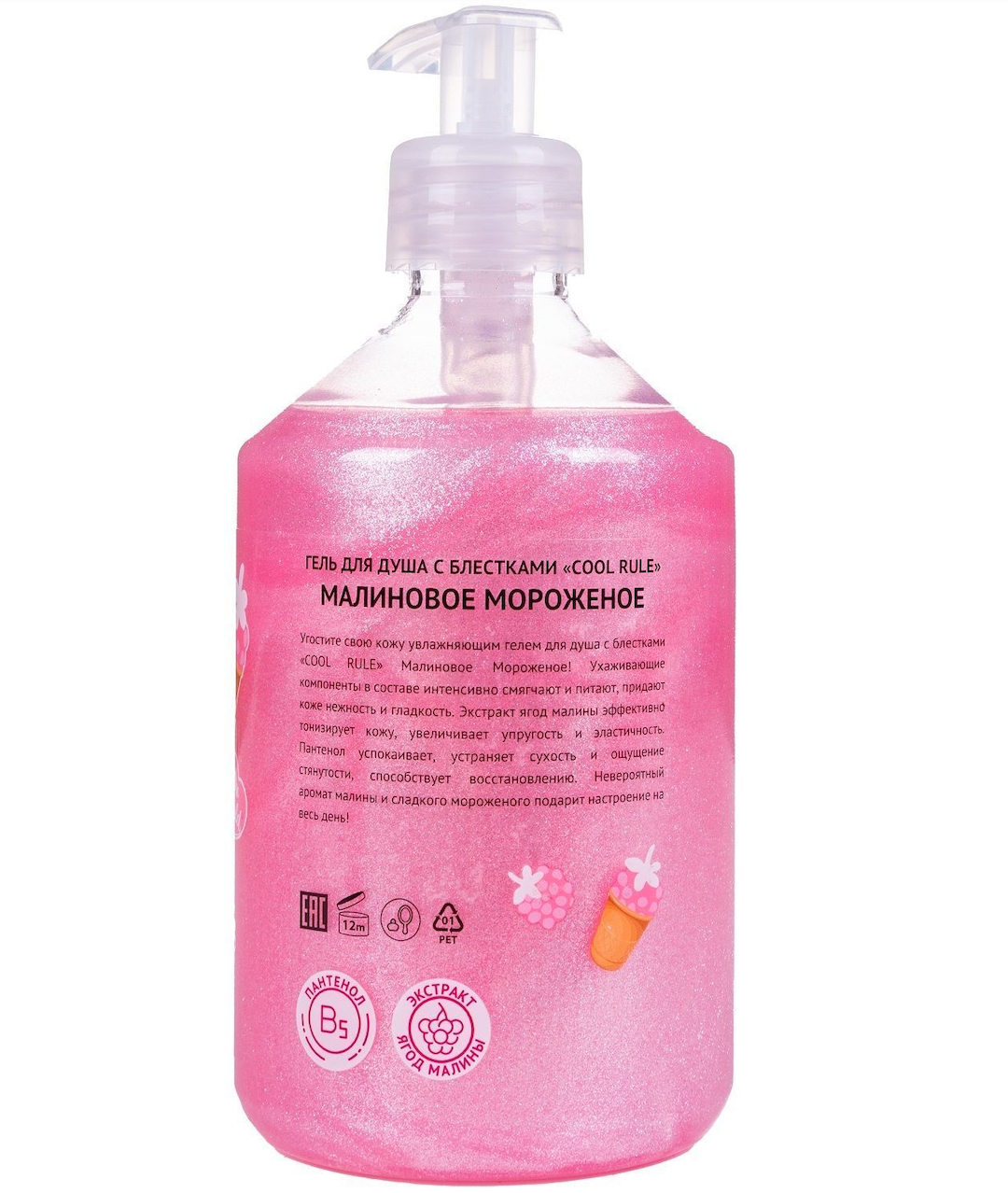 Cool Rule Гель для душа Малиновое мороженое - Угостите свою кожу увлажняющим гелем для душа с блестками «Малиновое мороженое»!