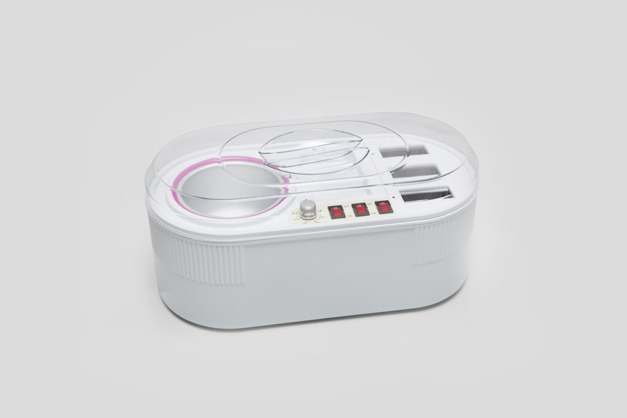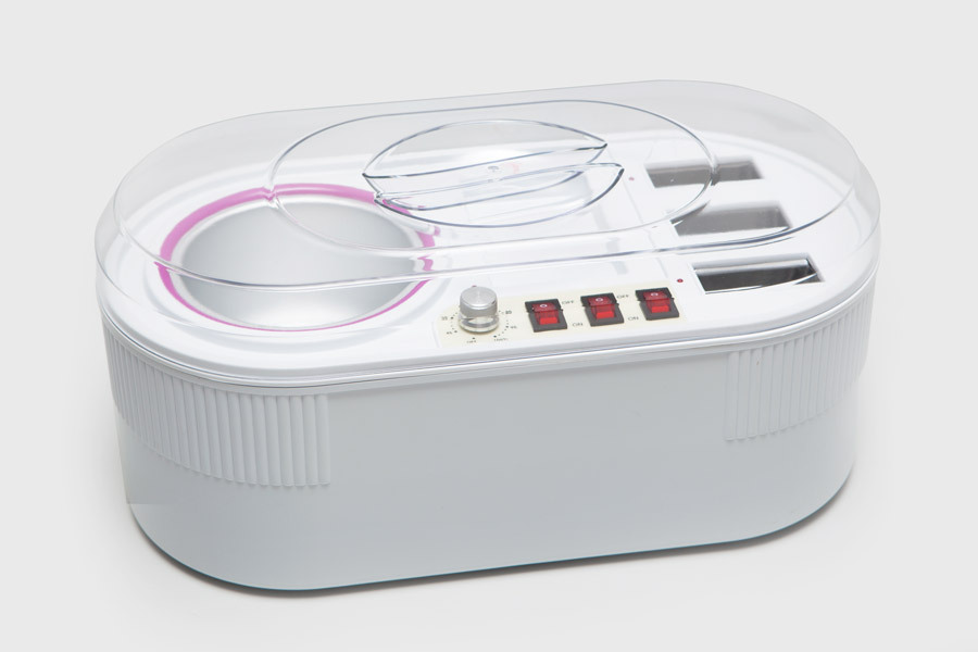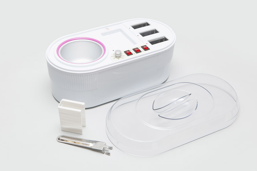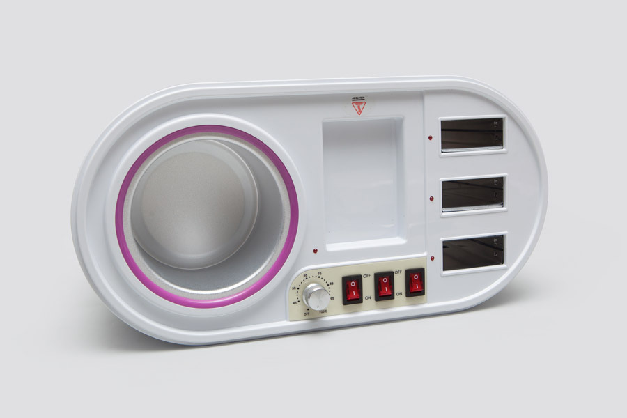 Устройство представляет собой комбинацию 3-кассетного и баночного воскоплава, каждый из которых оборудован независимым выключателем, дающим возможность работать с ними по отдельности.