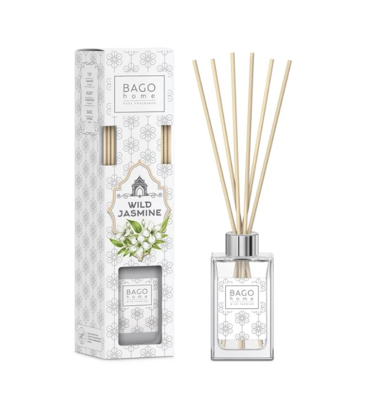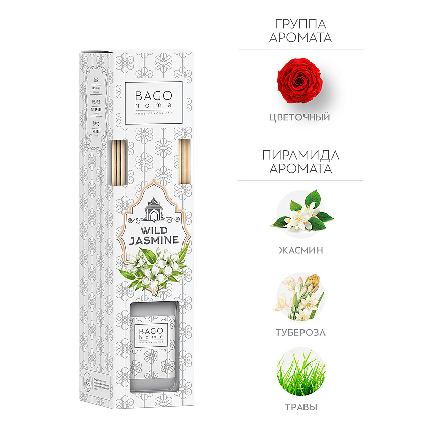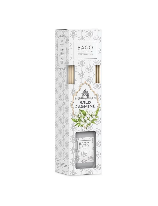 BAGO home Диффузор ароматический Дикий жасмин - Пьянящий аромат цветущего жасмина с медовой сладостью загадочной и влекущей туберозы с пряным тоном разнотравья.