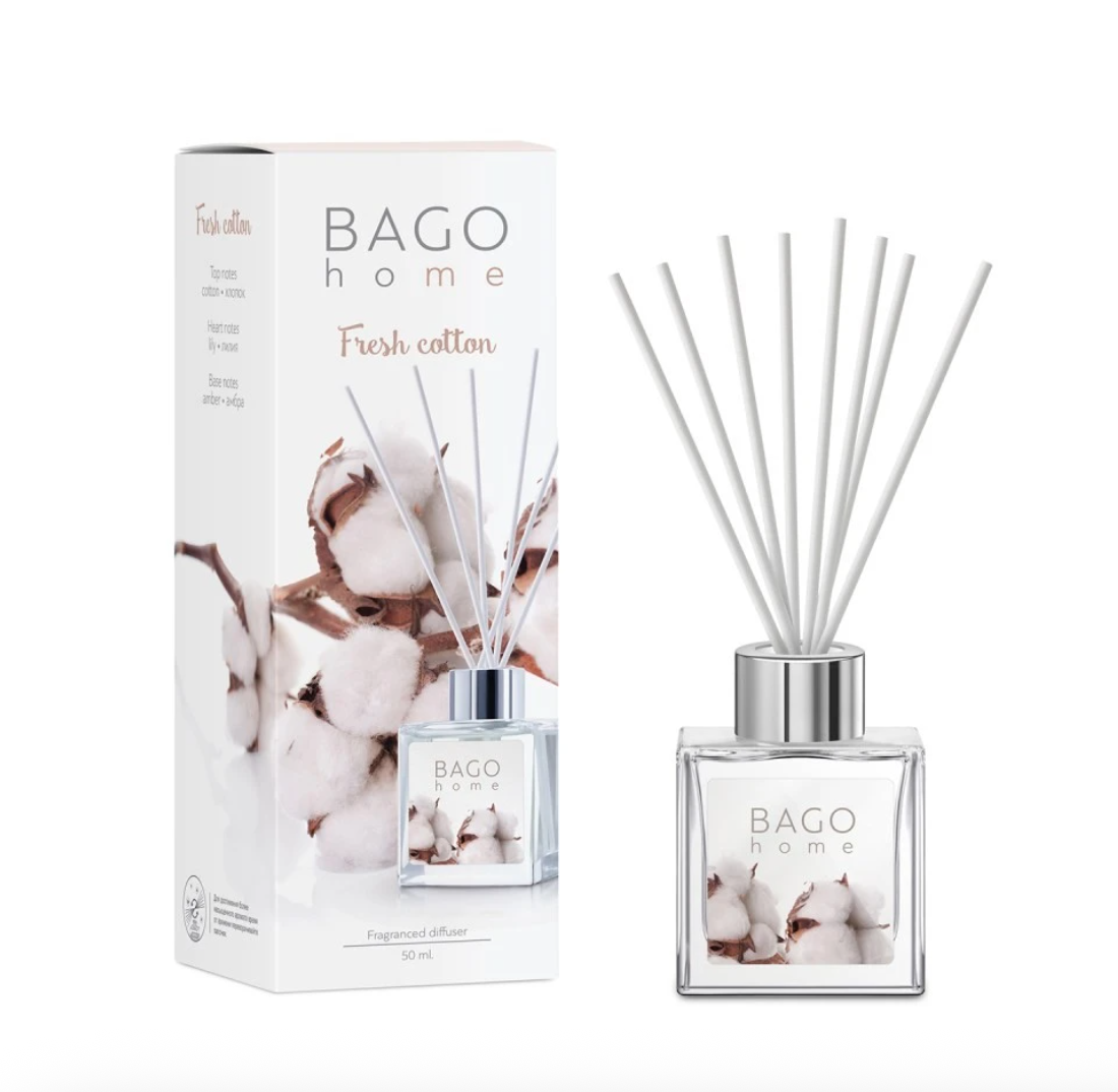Сочетание свежего с цветочным ароматом. Ароматический диффузор «Свежий хлопок» наполнит ваш дом свежим, но при этом сладким цветочным ароматом. BAGO home - это бренд ароматов для дома с европейским качеством.