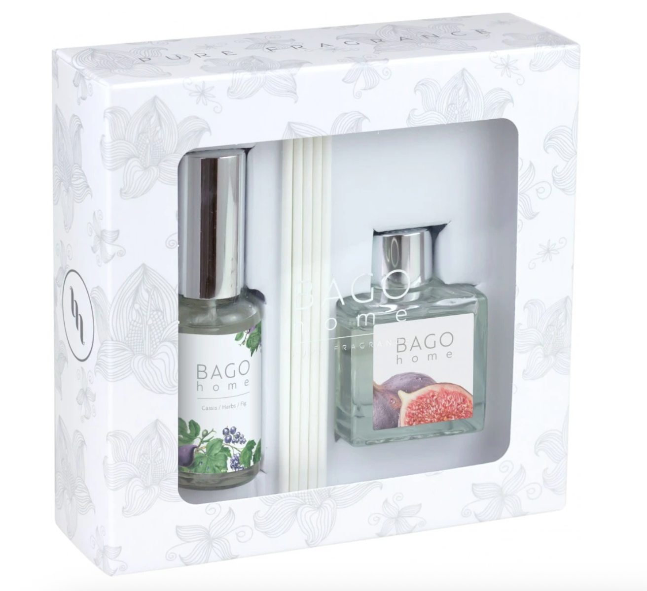 BAGO home Набор ароматический (Диффузор + Спрей) Инжир - многогранный аромат инжира от летнего и травянистого до тонкого и горьковатого, как миндаль, волшебным образом объединяются со спелой малиной и сочной клюквой.