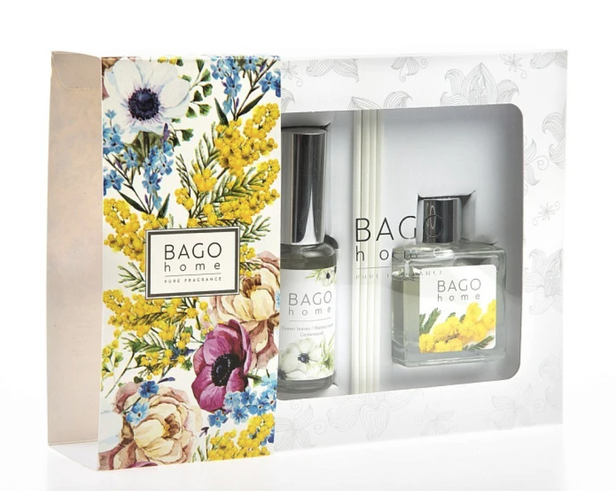 BAGO home Набор ароматический (Диффузор + Спрей) - Сладковато-медовый аромат цветущей мимозы.