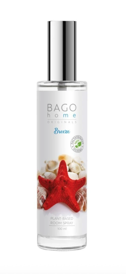 BAGO home Спрей ароматический Бриз - Свежий бергамот, воздушные белые цветы и зеленый дымный мох - насладитесь дуновением прохладного морского бриза.