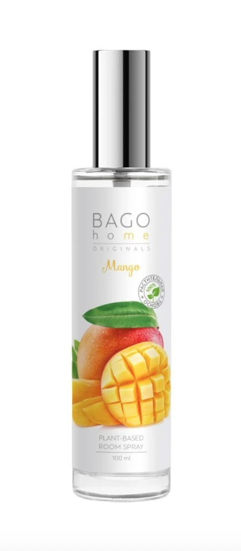 BAGO home Спрей ароматический Манго - наполнит Ваш дом экзотическим ароматом, сплетенным из сочной экзотики манго и ананаса, цитрусовой кислинки мандарина и солнечной сладости спелого персика.