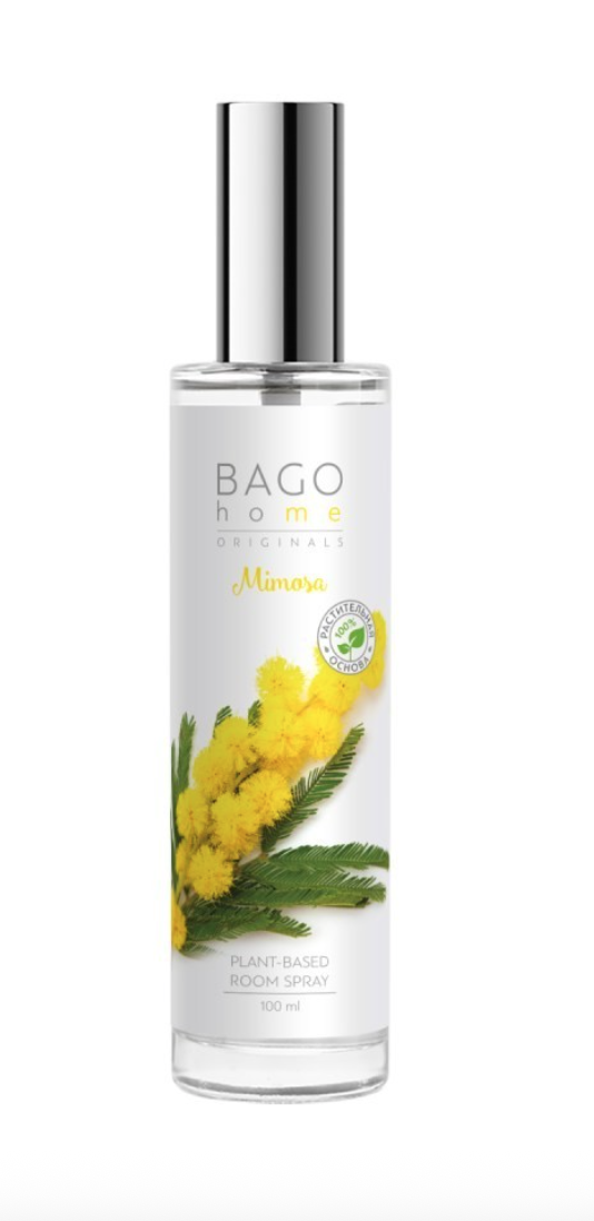 BAGO home Спрей ароматический Мимоза - Сладковато-медовый аромат цветущей мимозы с легким оттенком зелени и пьянящего нарцисса на мускатной основе.