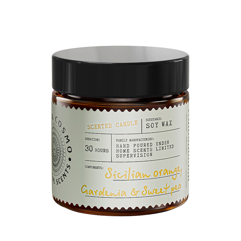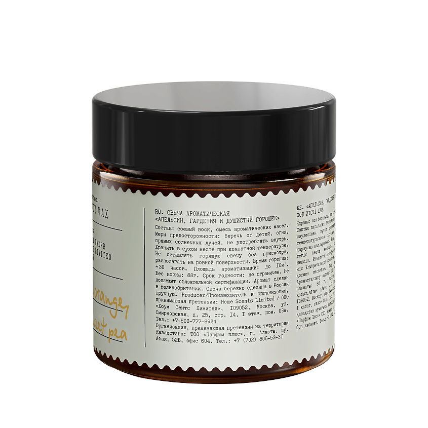 - Свеча ароматическая Апельсин гардения и душистый горошек в стекле, 88 гр.