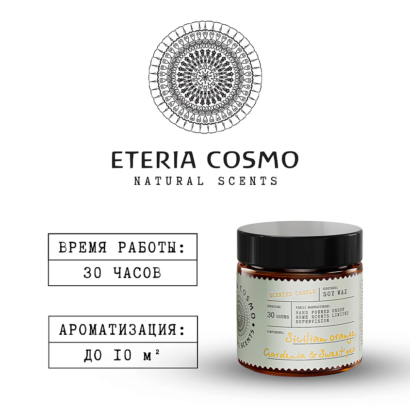 ETERIA COSMO Свеча ароматическая Апельсин гардения и душистый горошек - Бодрящий, вдохновляющий аромат.