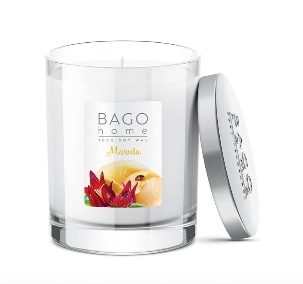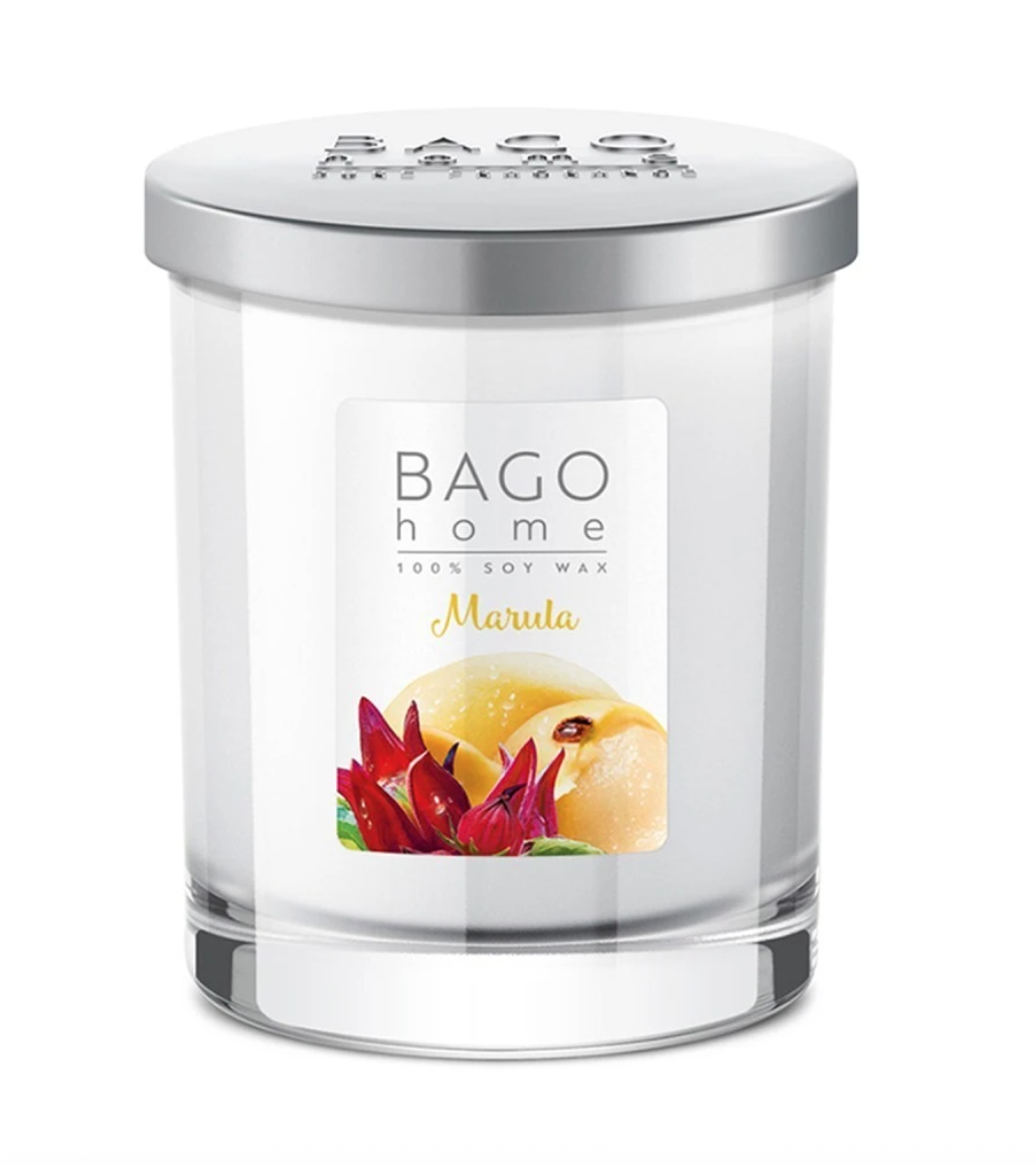 BAGO home Свеча ароматическая Марула - Насыщенный аромат марулы и королевской розы с нотами бергамота, ягод перечного дерева, лилии и фрезии.