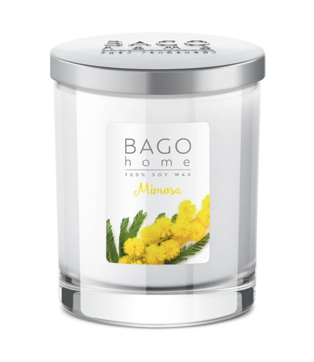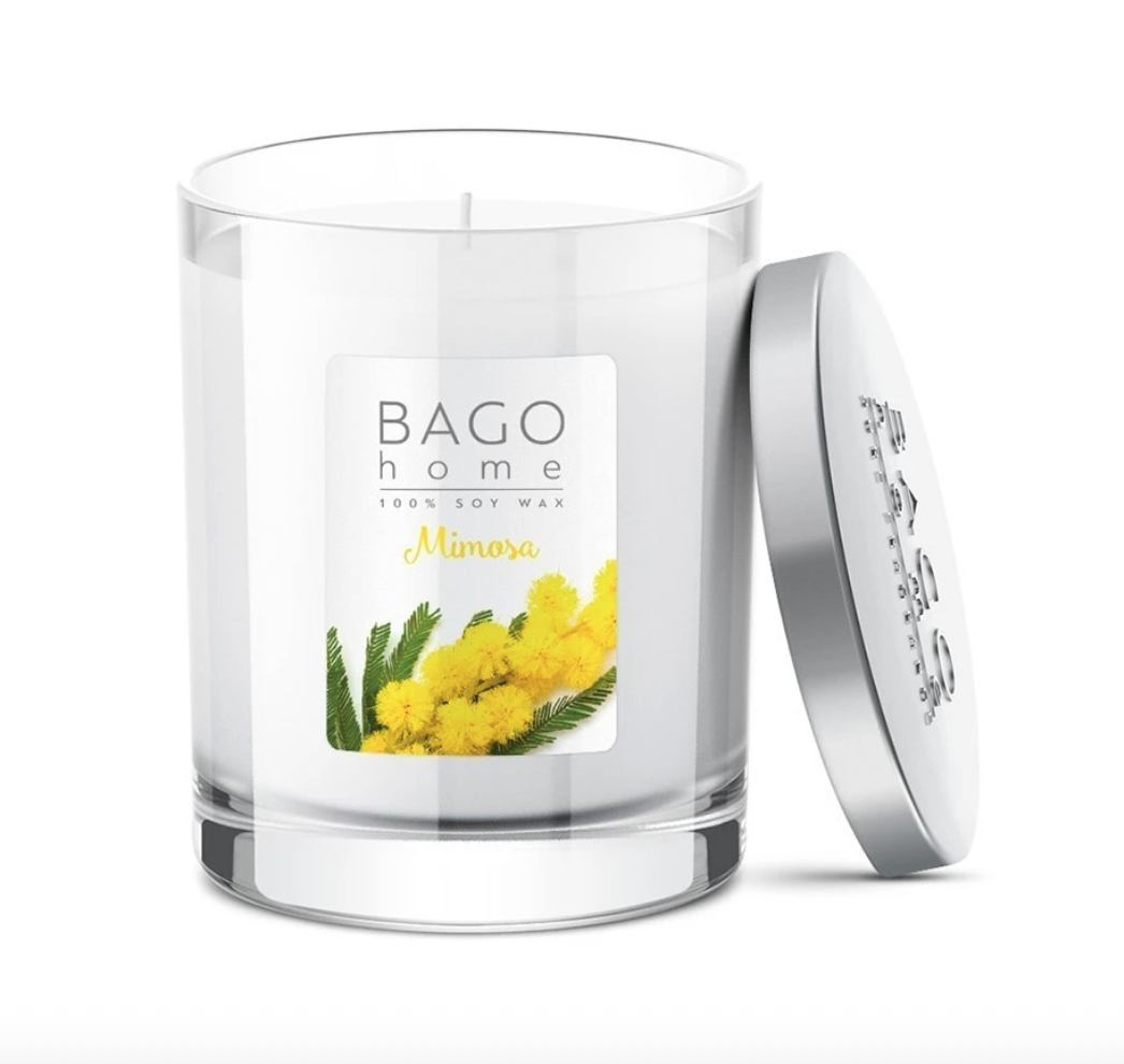 BAGO home Свеча ароматическая Мимоза - Сладковато-медовый аромат цветущей мимозы с легким оттенком зелени и пьянящего нарцисса на мускатной основе.