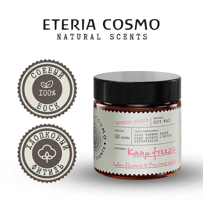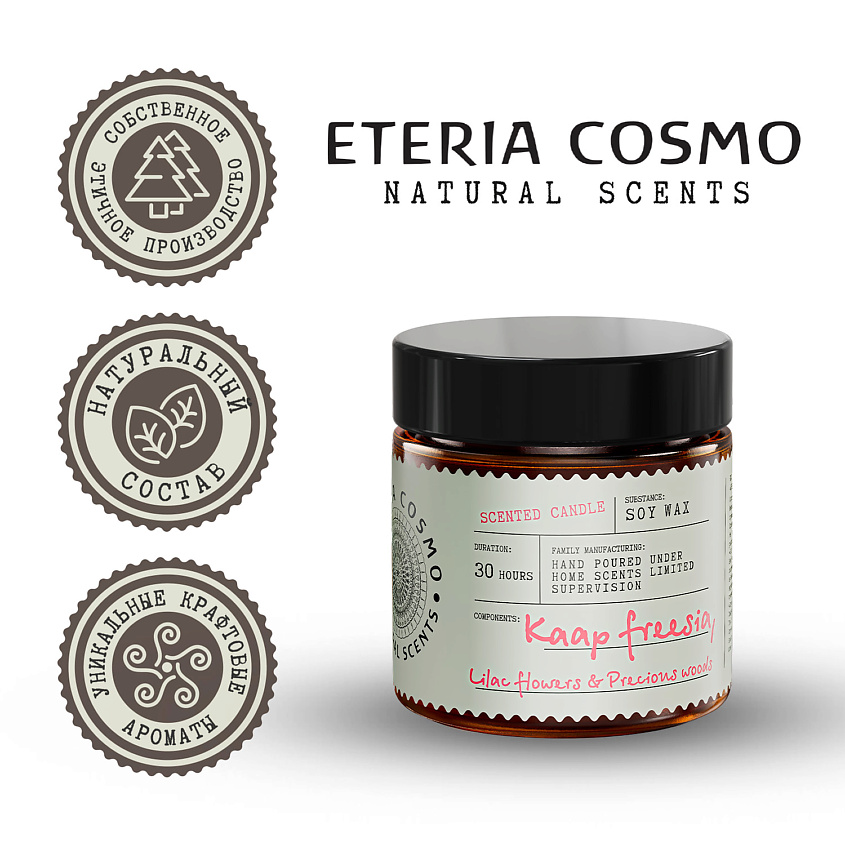 ETERIA COSMO Свеча ароматическая Фрезия, сирень и драгоценное дерево - Аромат для концентрации и баланса энергии.