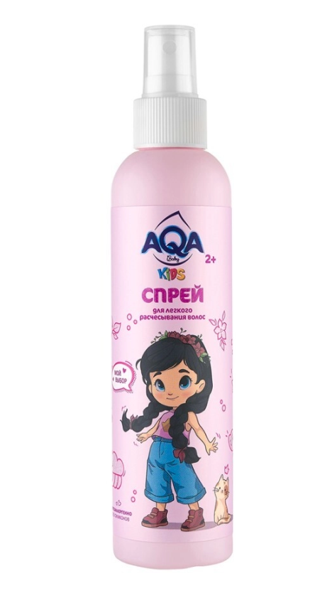 AQA baby KIDS Спрей-кондиционер для легкого расчесывания волос - основан на чистейшей артезианской питьевой воде и разработан специально для малышей от 2 лет и старше.