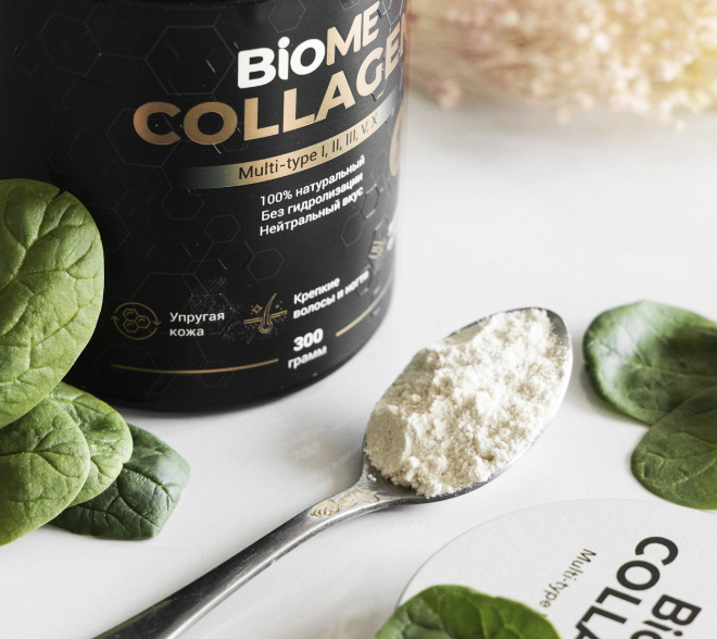 BioME Коллаген порошок питьевой - содержит 5 типов коллагена и обеспечивает комплексную поддержку кожи, суставов и волос.