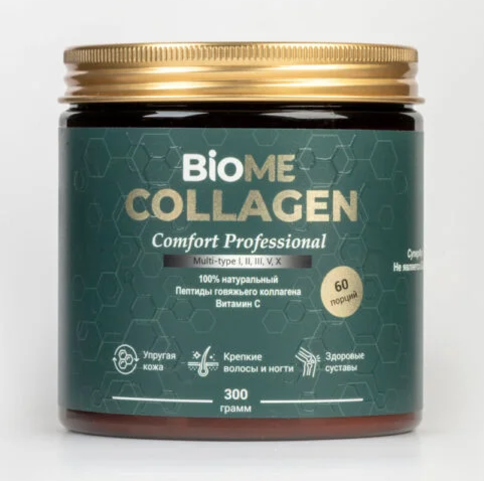 - BioME Коллаген порошок питьевой для красоты волос, кожи и здоров. суставов, 300 гр.