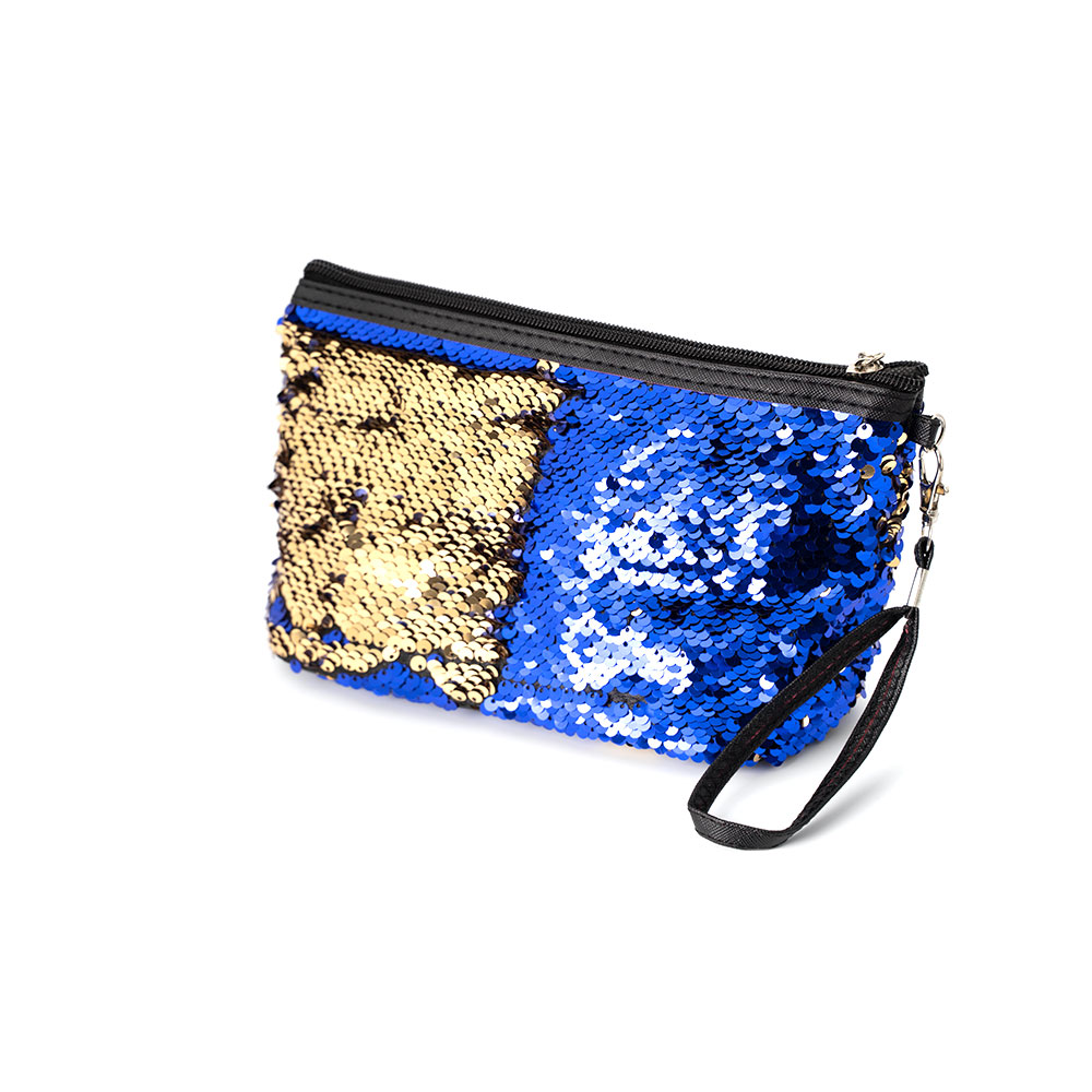 - 364718 Косметичка с пайетками Русалка прямоугольная, синий/золотой