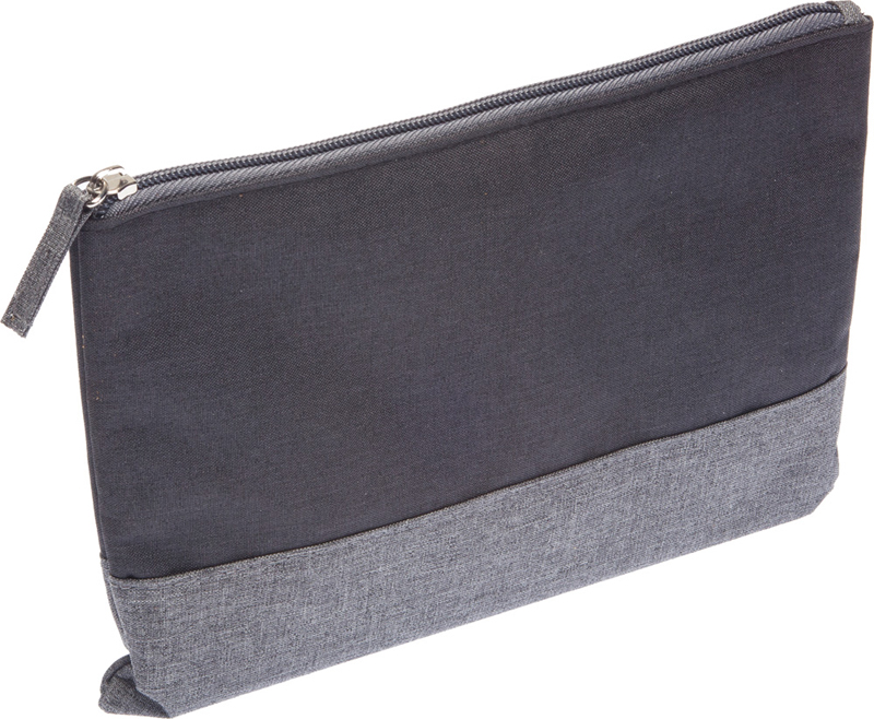 Изысканное сочетание темных тонов основания косметички и серого обрамления – роскошный дизайн аксессуара привлекает внимание и поражает своей солидностью.