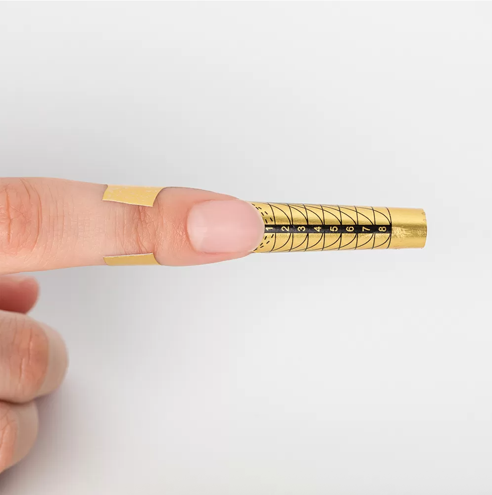 RuNail Одноразовые формы для наращивания ногтей Золотые - изготовлены из прочной фольгированной бумаги, имеют надежную клеевую основу и удобную разметку.