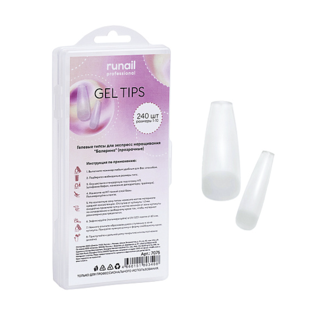 - 7075 RuNail Гелевые типсы Балерина прозрачные, 240 шт.