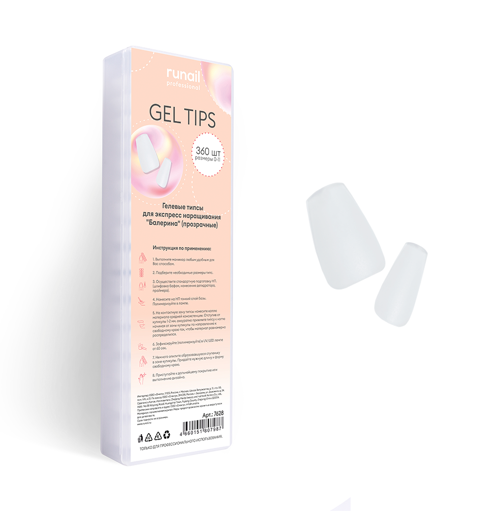 - 7628 RuNail Гелевые типсы Балерина прозрачные, 360 шт.