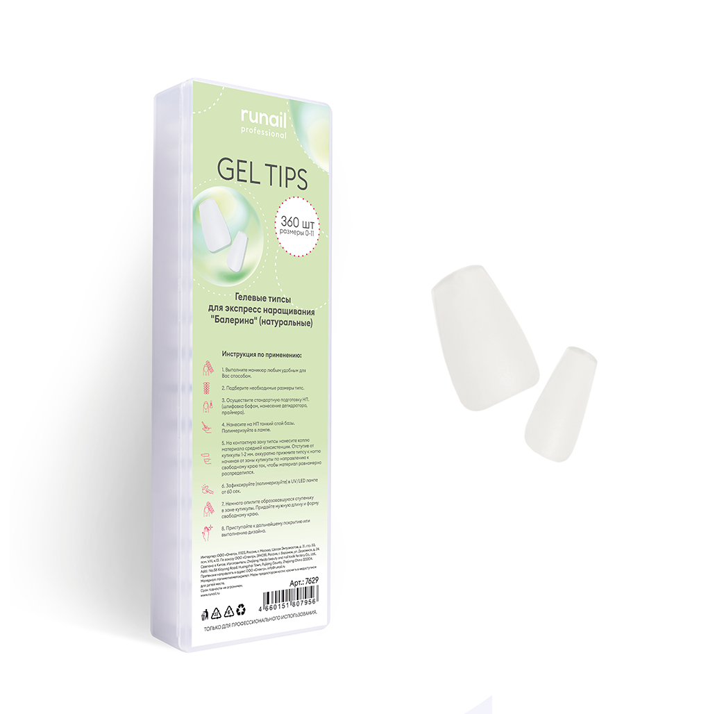- 7629 RuNail Гелевые типсы Балерина, 360 шт.