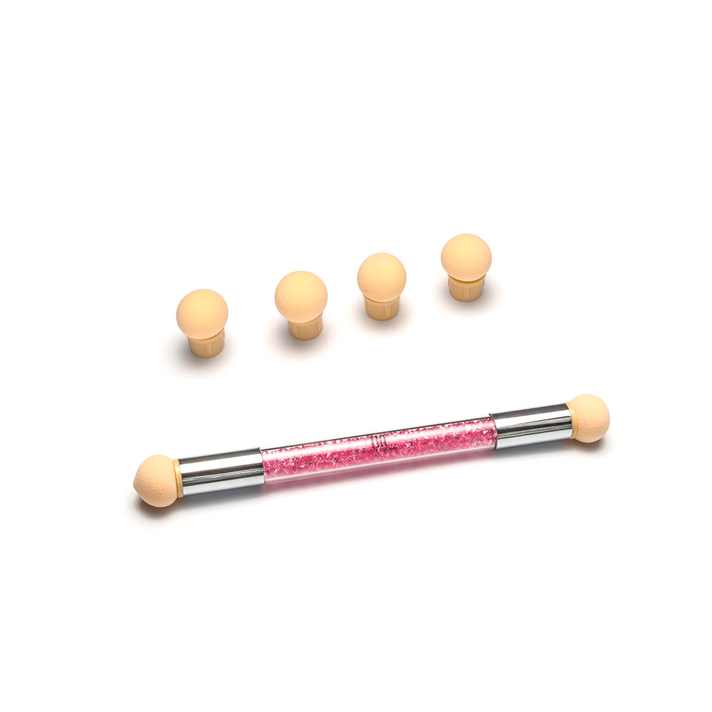 Это новая технология в дизайне ногтей на гель-лаке, которая позволяет создать воздушный дизайн и получить идеальный эффект аэрографии на ногтях без использования аэрографа. В комплекте: прозрачная стеклянная ручка с металлическими наконечниками и 6 насадок со спонжами (пуфами) в виде шариков, которые очень просто сменять. 3 насадки полностью круглые, а 3 имеют на кончике небольшой пик. Сами шарики очень мягкие и имеют пористую структуру.