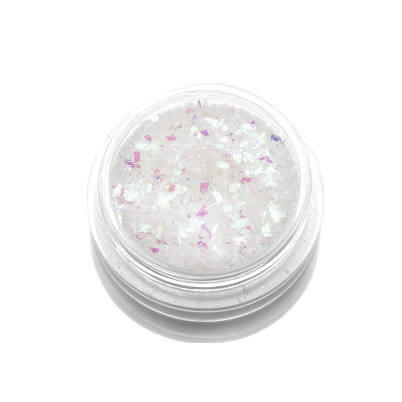 Представляет собой тонкие прозрачные пластинки или чешуйки напоминающие фольгу. Используется материал для декорирования ногтевой пластины. Слюда может стать как основным элементом в дизайне, так и ярким акцентом. Пластинки наносятся на липкий слой цвета, либо на закрепитель.