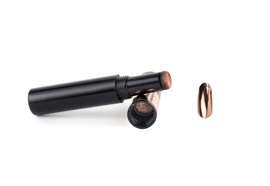 Теперь делать дизайны с зеркальным покрытием легко - пыль для втирки находится внутри съемного колпачка, что исключает ее рассыпание и экономит расход.