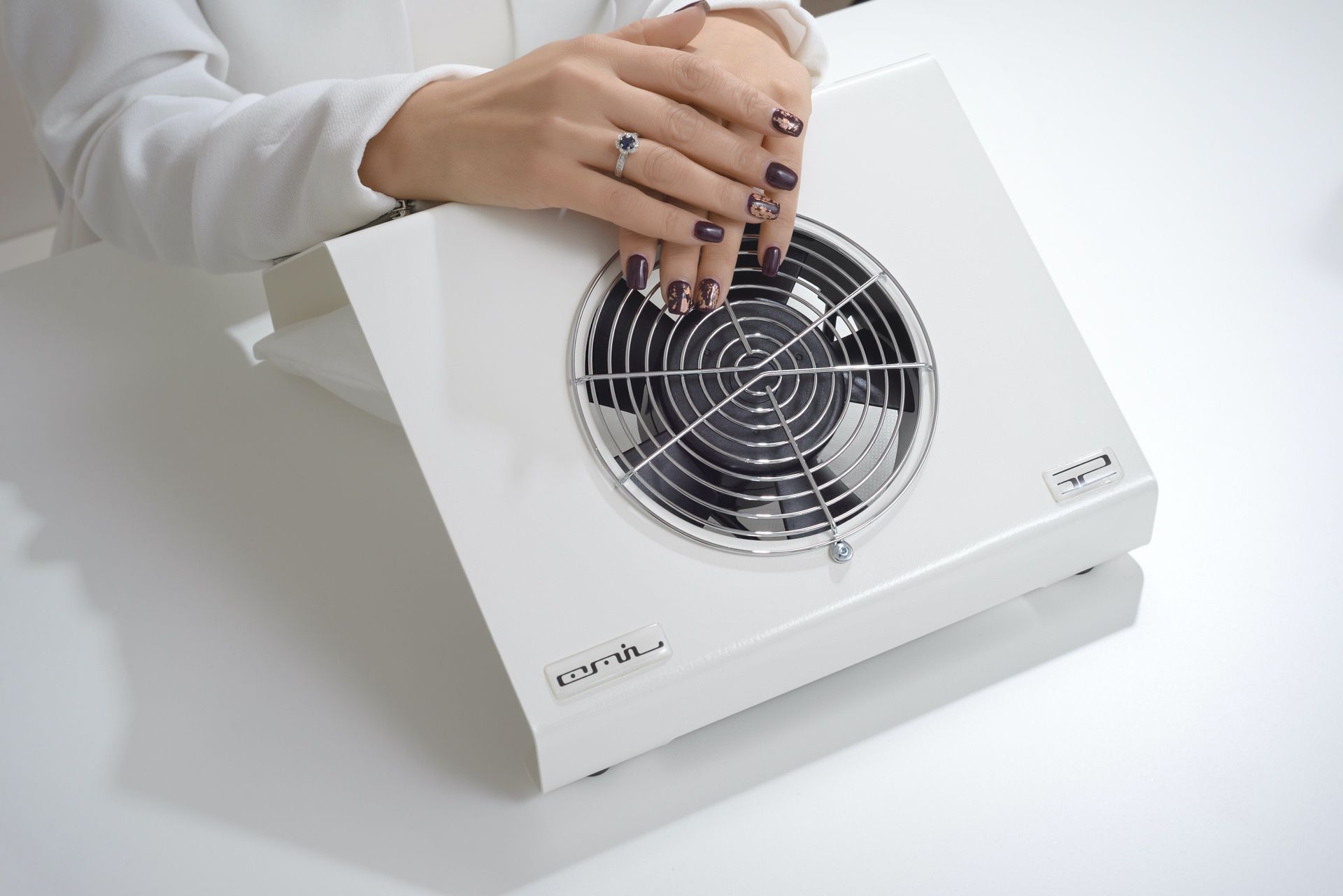 Предназначен для сбора пыли и мелких частиц, образующихся при проведении процедуры маникюра. Отсутствуют боковые распорки в конструкции, прочность увеличивается за счёт металлического корпуса, мешки надевать удобно, дизайн приятный и легкий. Пылесборник включает в себя металлический корпус со встроенным вытяжным вентилятором, лопасти которого защищены хромированной металлической решеткой.