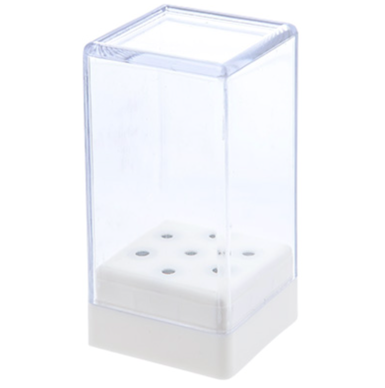 Пластиковая подставка-коробочка для хранения и транспортировки фрез для маникюра и педикюра.