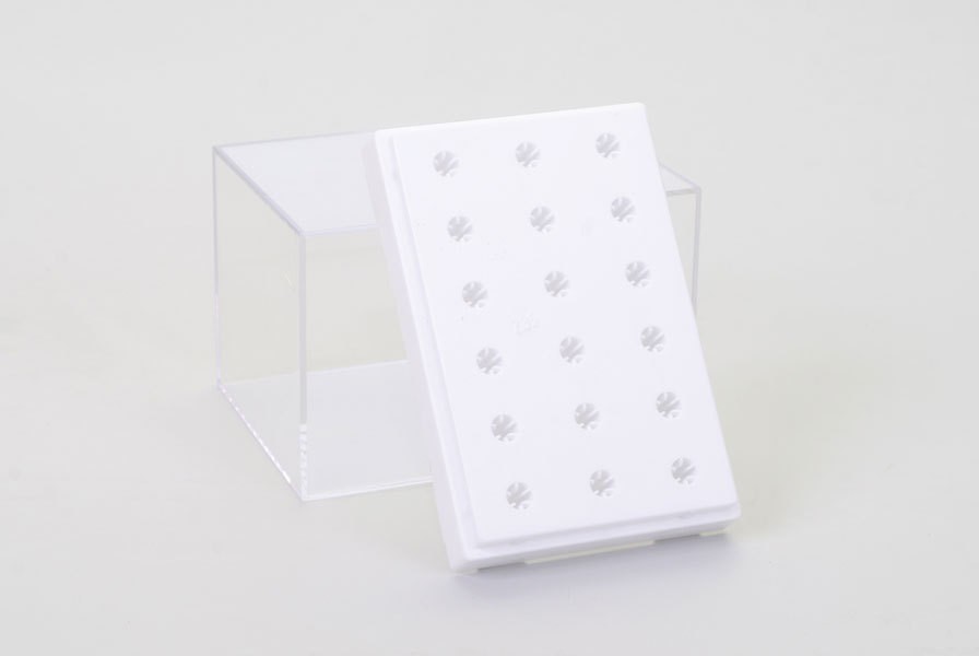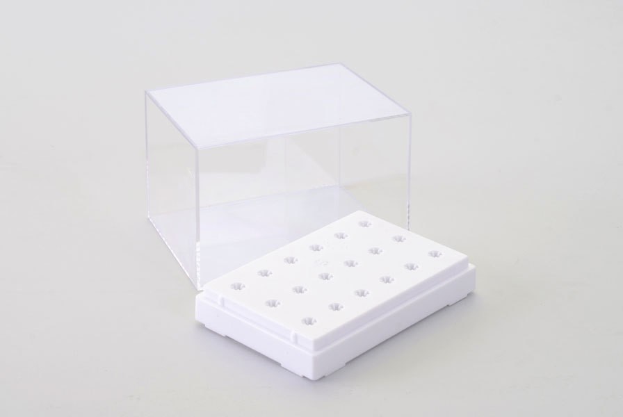 Пластиковая подставка-коробочка для хранения и транспортировки фрез для маникюра и педикюра.