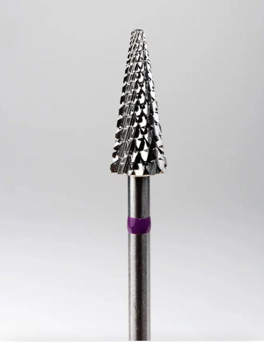 Конус с крупной крестообразно-поперечной нарезкой зубьев. Твердосплавная фреза применяется для аппаратного маникюра, снятия гель-лака и других полимерных покрытий, обработки загрубевшей кожи. Насадки ТВС преимущественно используют при работе с искусственными (гелевыми или акриловыми) ногтями.