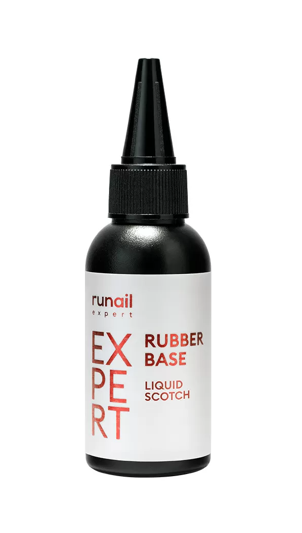 База Rubber Base Liquid Scotch Runail Expert отличается безопасной даже для ослабленных ногтей среднекислотной формулой - ph 3.5-4.