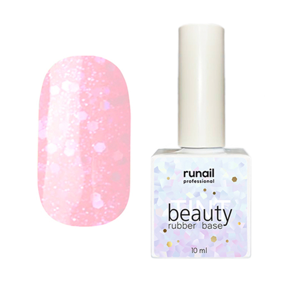 - Цветная каучуковая база RuNail Beauty TINT Glitter Mix