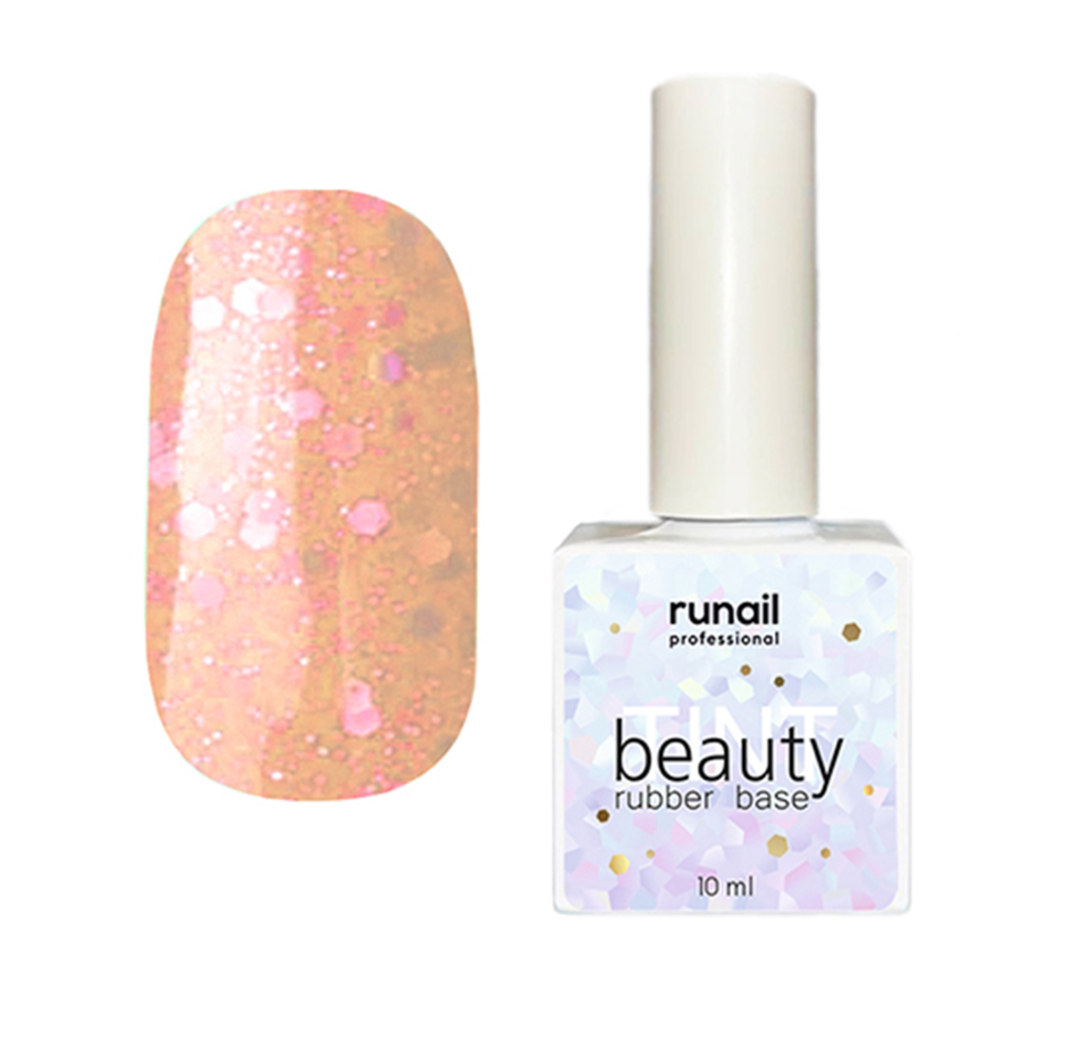 RuNail Каучуковая цветная база Beauty TINT Glitter Mix - Цветное базовое покрытие средней консистенции с добавлением, деликатно мерцающих конфетти и бликсов.