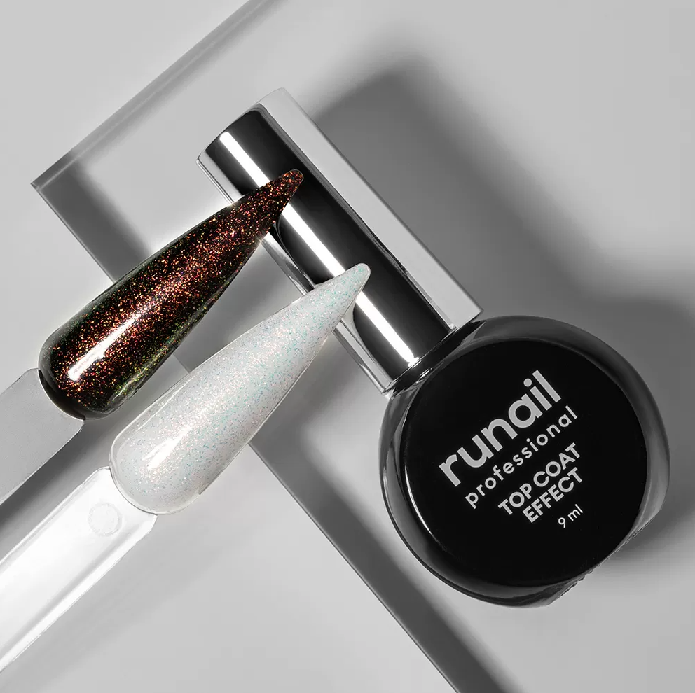 Runail Глянцевый Top Coat EFFECT OPAL AURORA - утончённый и благородный блеск, имитирующий природную красоту опала.
