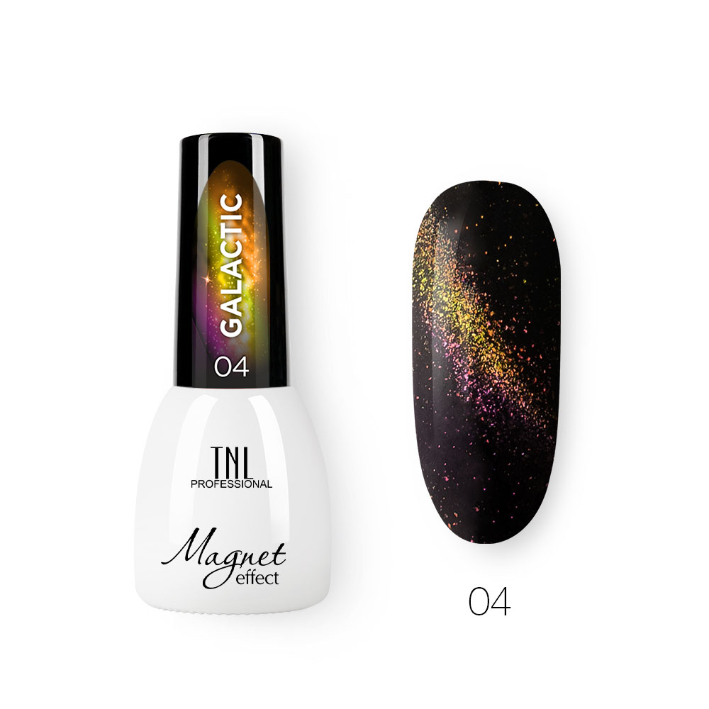 Гель-лак с эффектом кошачьего глаза TNL Galactic - роскошное сочетание мельчайших металлических частиц с вкраплениями блесток.