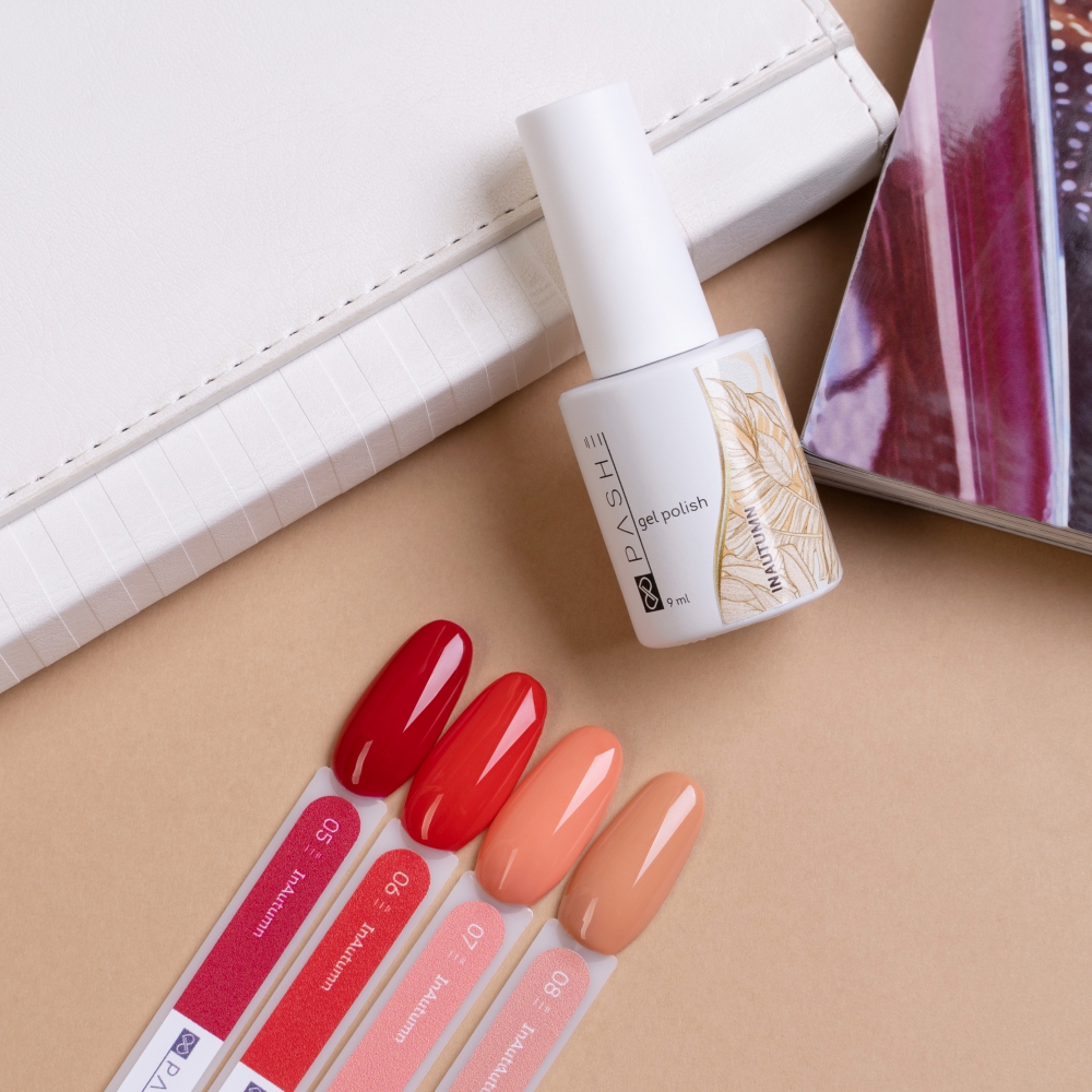 Результат: Гель-лак PASHE из коллекции InAutumn дарит стойкое покрытие и модные цвета, придавая маникюру особый осенний шарм.
