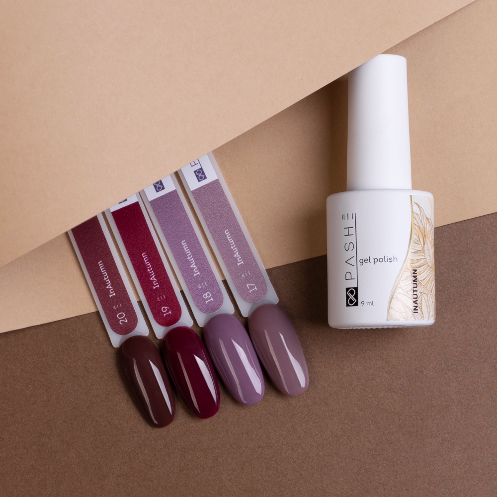 Результат: Гель-лак PASHE из коллекции InAutumn дарит стойкое покрытие и модные цвета, придавая маникюру особый осенний шарм.