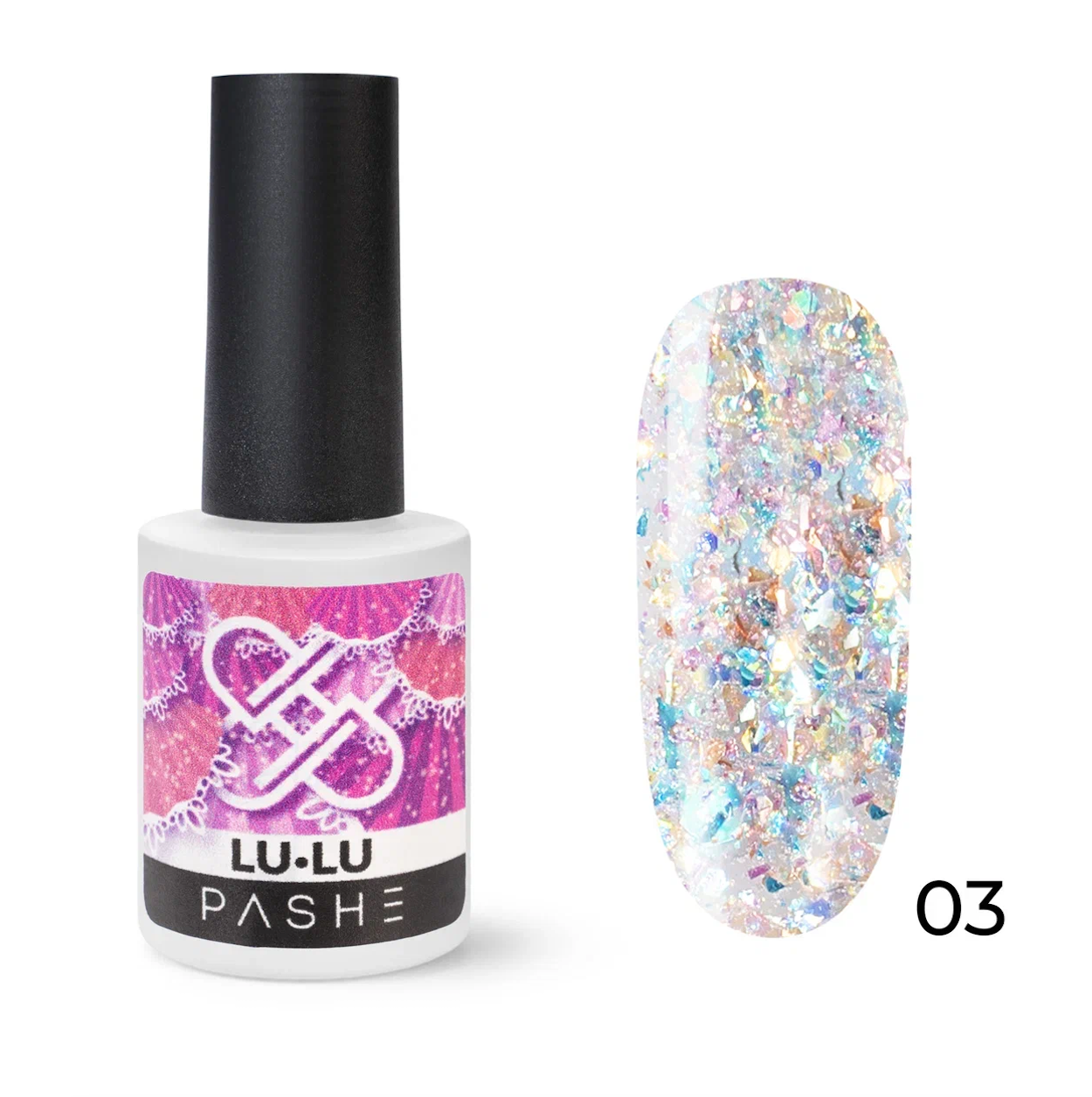 PASHE Гель-лак LU LU - с голографическим глиттером.