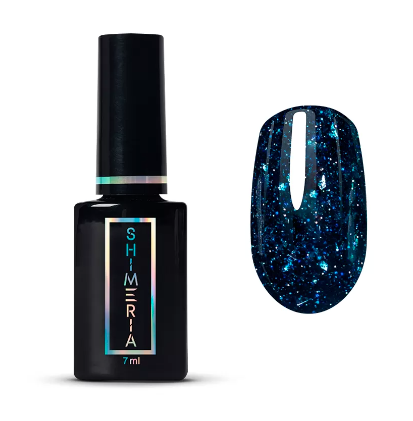 Сапфировое сияние шиммера раскрывается с каждым движением кисти по-новому. Элементы декора равномерно распределяются по ногтевой пластине и не топорщатся.