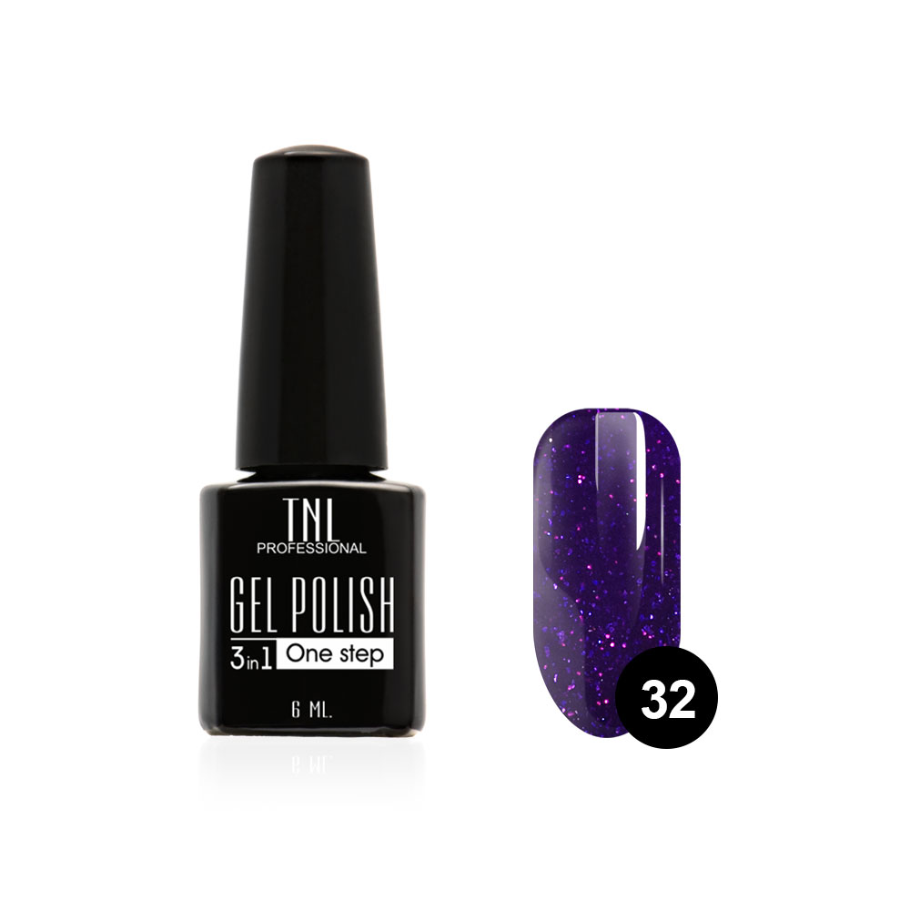 - TNL Гель-лак 3 в 1 №32 черничный с блестками, 6 мл.
