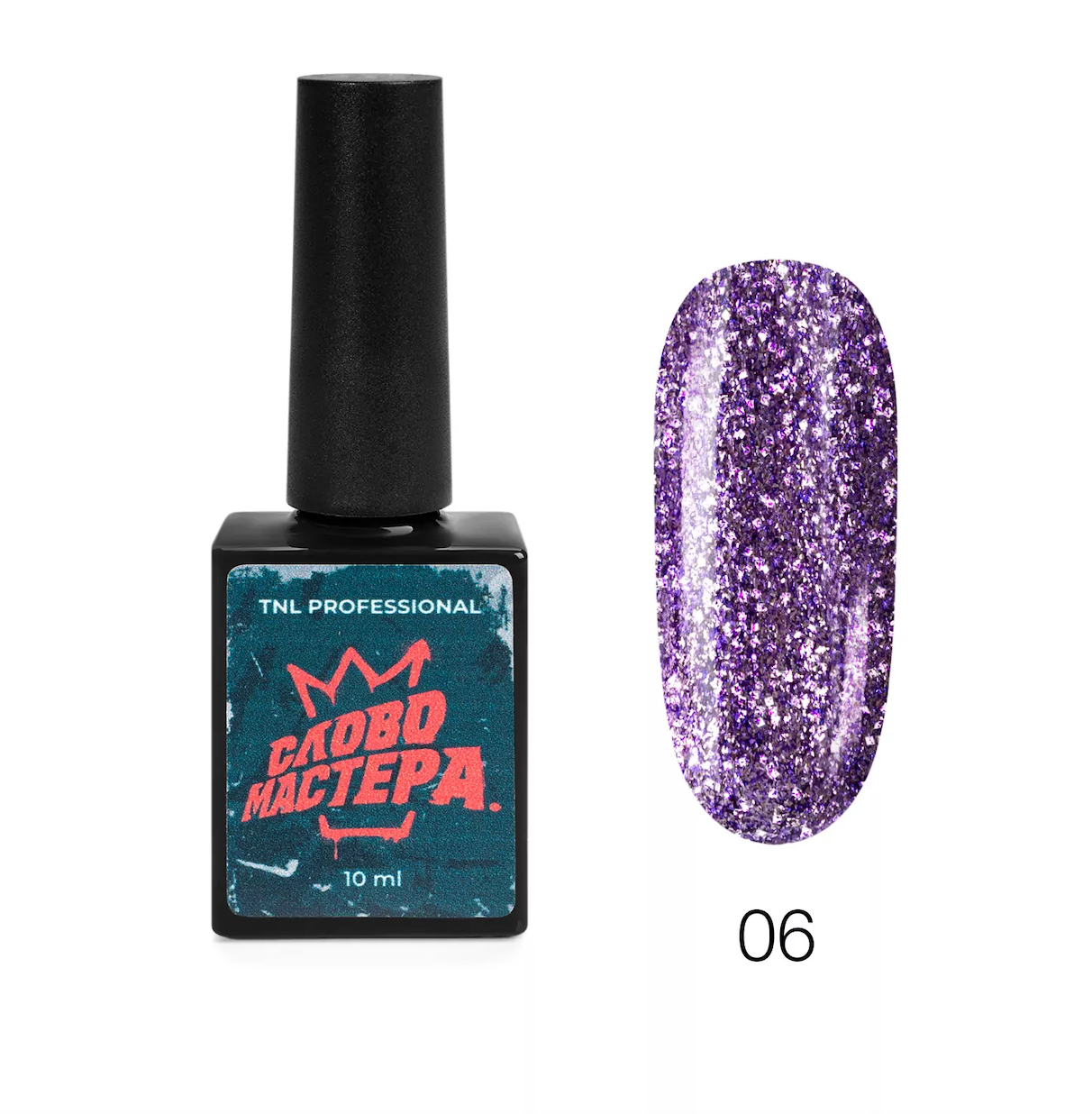 - TNL Гель-лак Слово Мастера с глиттером №06 - фиолетовое диско, 10 мл.