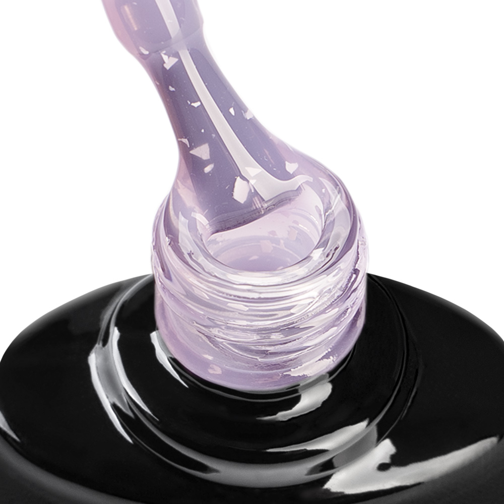 Белые переливающиеся вкрапления в сочетании с оттенками палитры от спокойных до насыщенно ярких придают маникюру особый шарм. Гель средней консистенции, с хорошей укрывистостью может использоваться как самостоятельный маникюр и как фон для дополнительного дизайна.