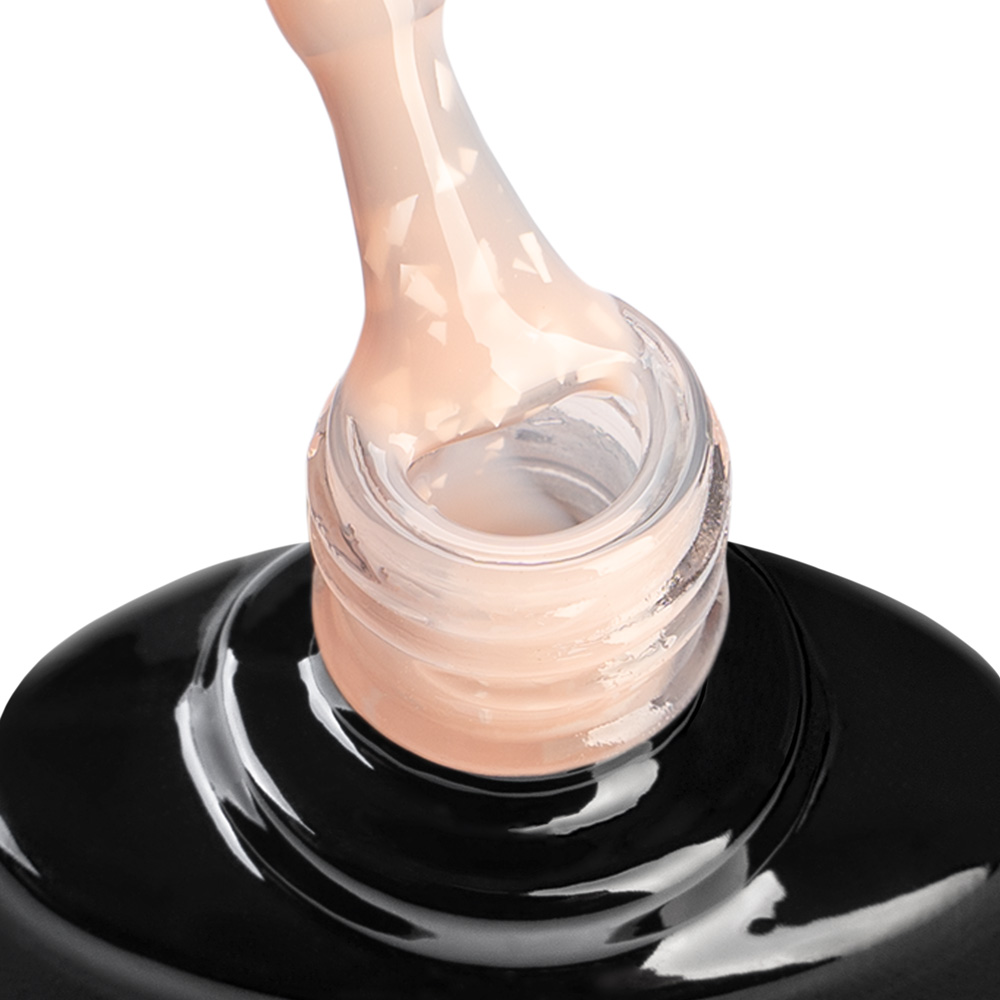 Белые переливающиеся вкрапления в сочетании с оттенками палитры от спокойных до насыщенно ярких придают маникюру особый шарм. Гель средней консистенции, с хорошей укрывистостью может использоваться как самостоятельный маникюр и как фон для дополнительного дизайна.