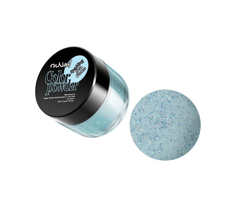 - 0053 RuNail Акриловая пудра с блёстками Морская волна, 7,5 гр.