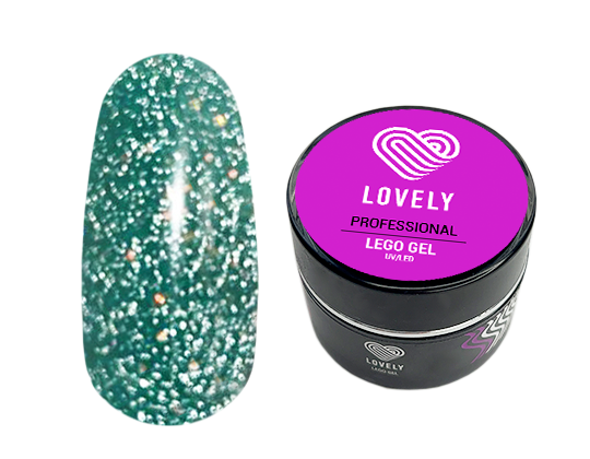 Lovely Гель для наращивания и укрепления ногтей Lego Gel Lurex - Камуфляжный гель со светоотражающими частицами и золотым шиммером.
