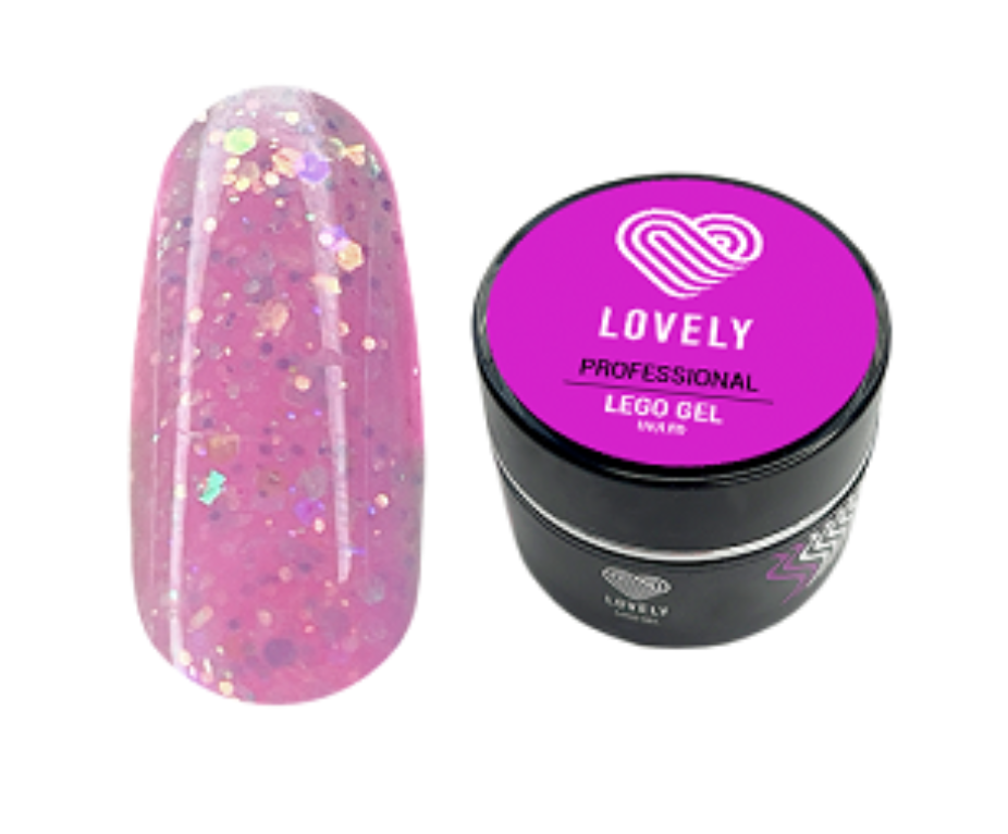 Lovely Гель для наращивания и укрепления ногтей Lego Gel - Содержит голографические хлопья юки разных размеров.