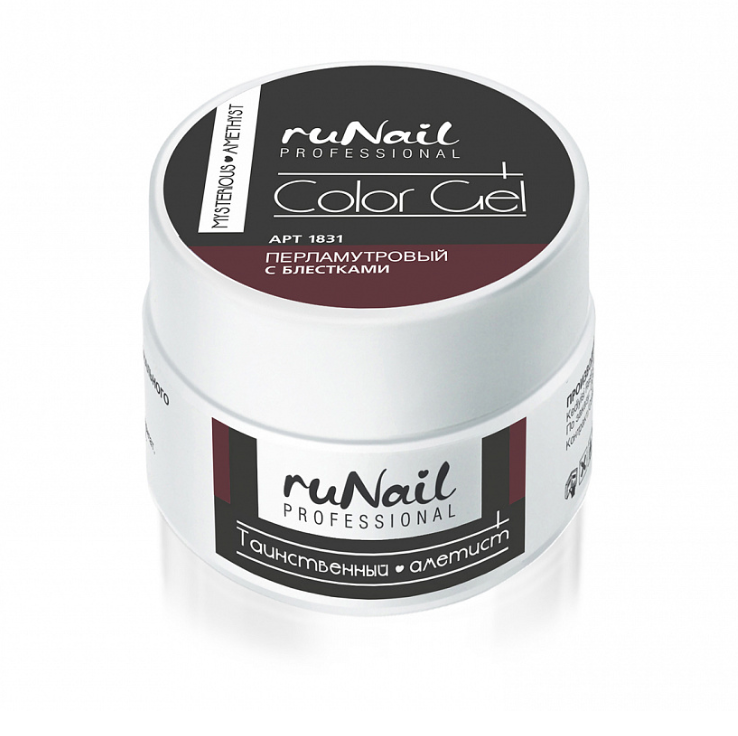 - 1831 RuNail Цветной УФ-Гель Аметист, перламутровый с блёстками, 7,5 гр.